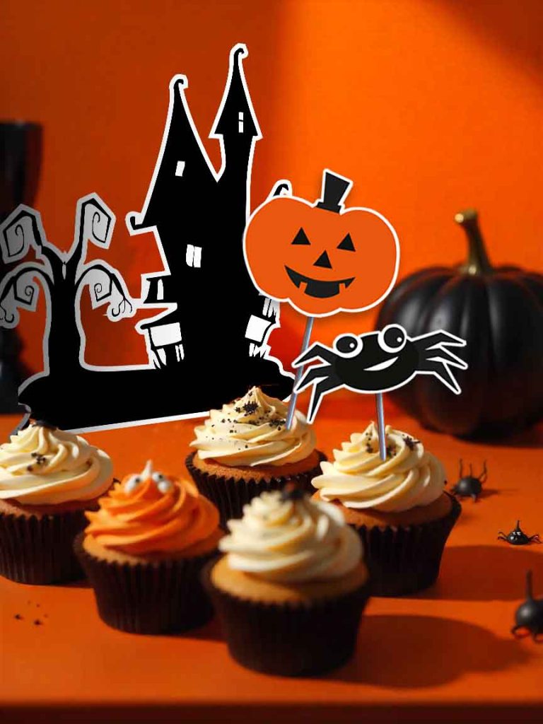O Halloween não começa só quando os convidados chegam. A experiência de preparar tudo já faz parte da festa! Organie uma tarde criativa, convide amigos ou coloque as crianças para participar da montagem. Eles vão adorar recortar as bandeirolas, colocar toppers nos cupcakes ou espalhar fantasmas pela casa. Além de deixar tudo mais bonito, o clima de “faça você mesmo” cria memórias especiais.