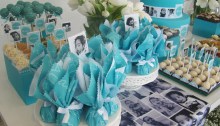 Toda festa de aniversário é um momento muito especial. Esta, de 50 anos, foi planejada com muito carinho pela aniversariante que procurou fotos de todos os convidados para compor a decoração. Com a montagem das fotos foram produzidos os cardápios, caixas para lembranças com macarons, um álbum para que os convidados deixassem suas mensagens, convites…